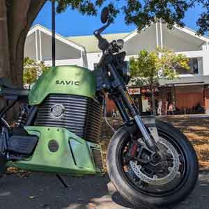 The Savic is the most stylish motorcycle on the market. It’s lively in Normal mode and in Sport threatens to pull your arms out of their sockets. Tony Davis